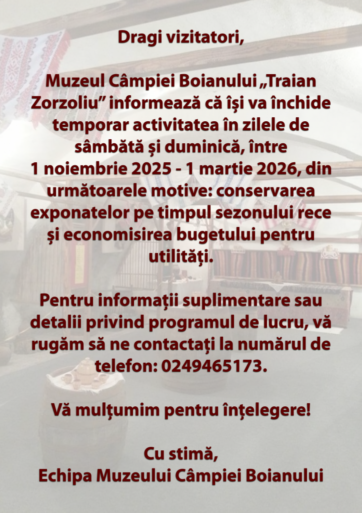 Descoperă Muzeul Câmpiei Boianului „Traian Zorzoliu”